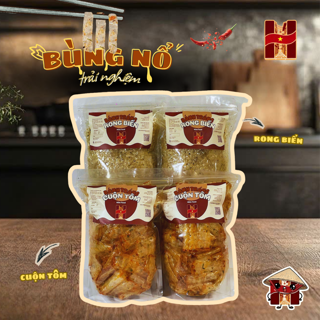 - Rong biển (2 túi lớn) + Cuộn tôm (2 túi lớn)